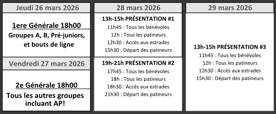 Il ne reste que quelques billets! Vous pouvez ensuite venir à l'aréna vendredi soir ou le jour même pour récupérer votre billet.